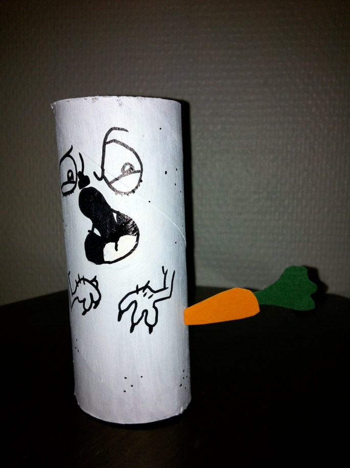 Da jeg våknet i dag og visste hvor lenge jeg måtte være på jobb fikk jeg først litt panikk. Hva slags dorullnisse kan jeg vel få laget til i kveld? Det er allikevel med stolthet jeg kan presentere dagens dorullnisse, som ble laget i dag tidlig rett før jeg hoppet på toget til jobb, med flodhesthode under armen. Dagens nisse er Dorullnissen som har vært ute og laget dorullengler i snøen. Uff uff uff, ikke prøv dette hjemme, doruller!