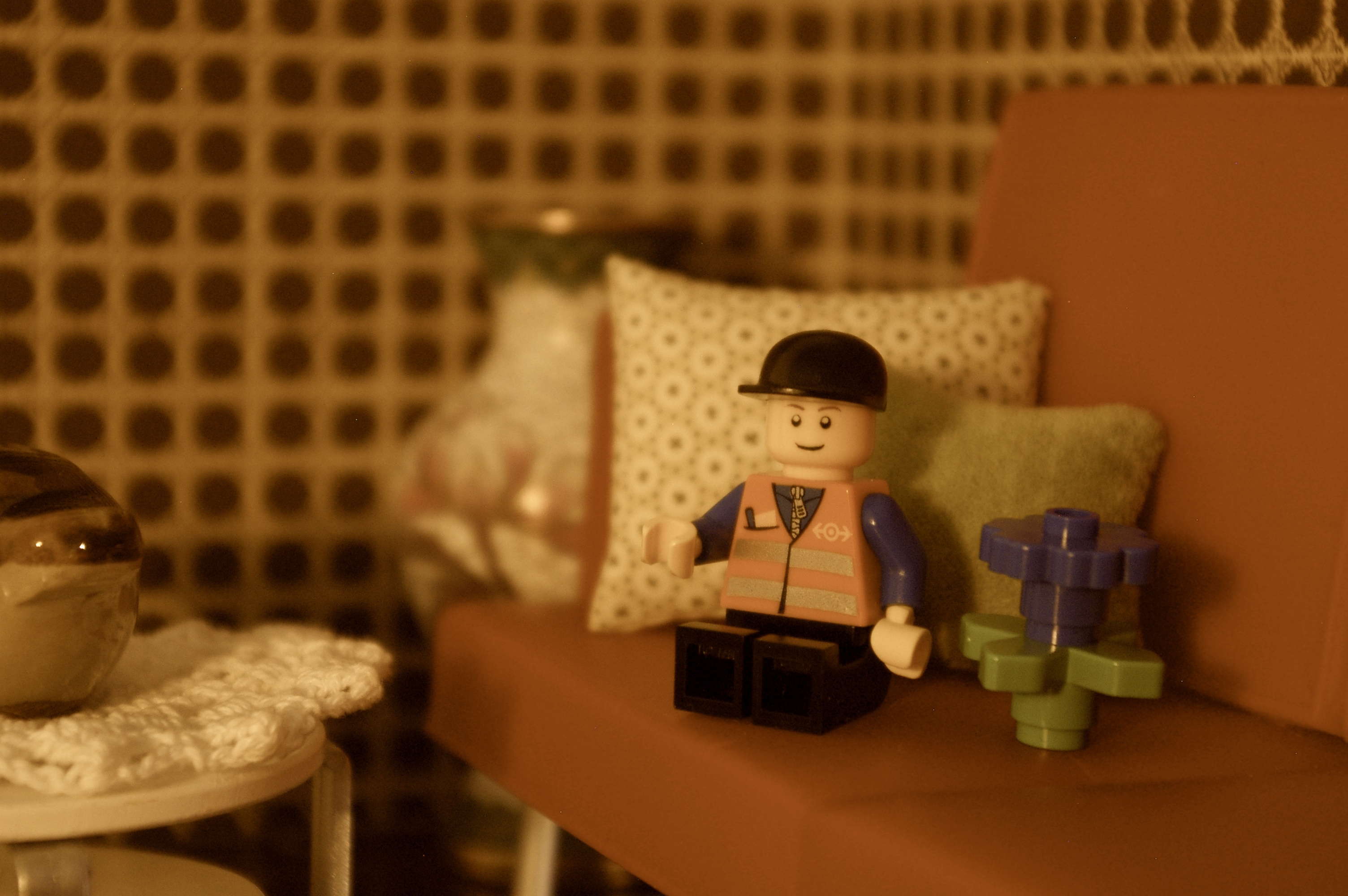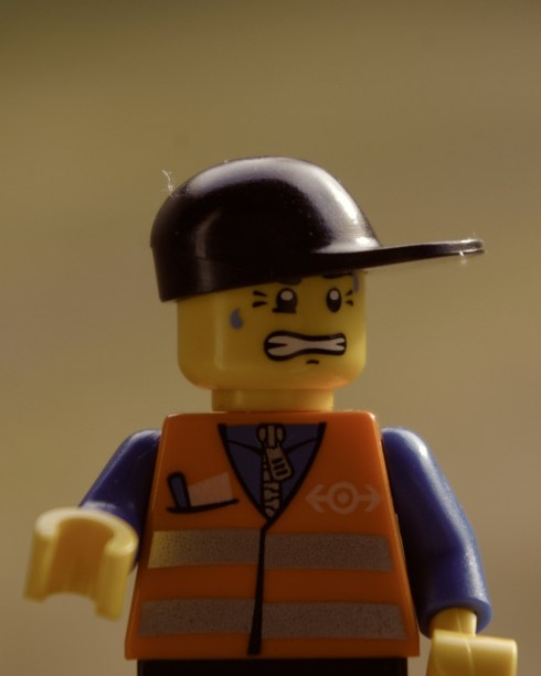 Legomannen kneppet på seg hjelmen sin, og latet som om han rettet litt på vesten, selv om alle kunne se det var et klistremerke.