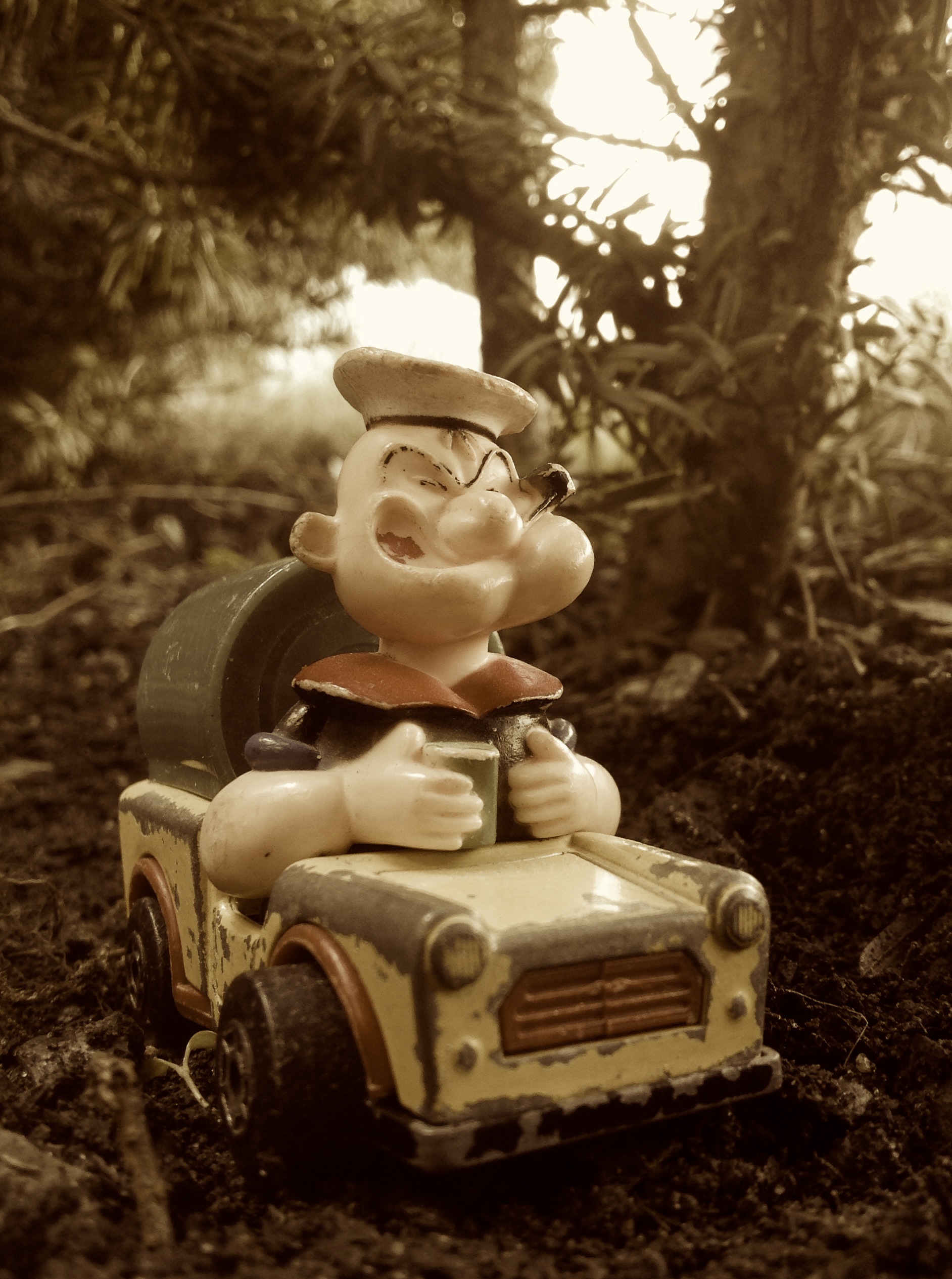 – Ole BRUMM! Han hadde klart å holde seg våken! Men han snek seg ut i blant. Men han var i alle fall våken. Han er aldri det på min dag. Han tror jeg bare serverer hostesaft, men han og det lille… greiene… en gris. Grisen! De synes vel sakene mine er for sterke. De sovner bestandig før maten kommer på bordet. Den rosa saken også, med glitteret. Tåler nesten ingenting. En flaske max, selvom den er stor som en… hest! Jeg elsker jo varm mat av alle slag jeg. Jeg er vel den eneste som varierer maten noe. Skipper’n prøver litt med ulike retter, men det er jo alltid spinat. SUPPE for eksempel. BRØD… alt med spinat. Jeg husker ALT, vil dere ha en liste over alt Skipper’n har laget?