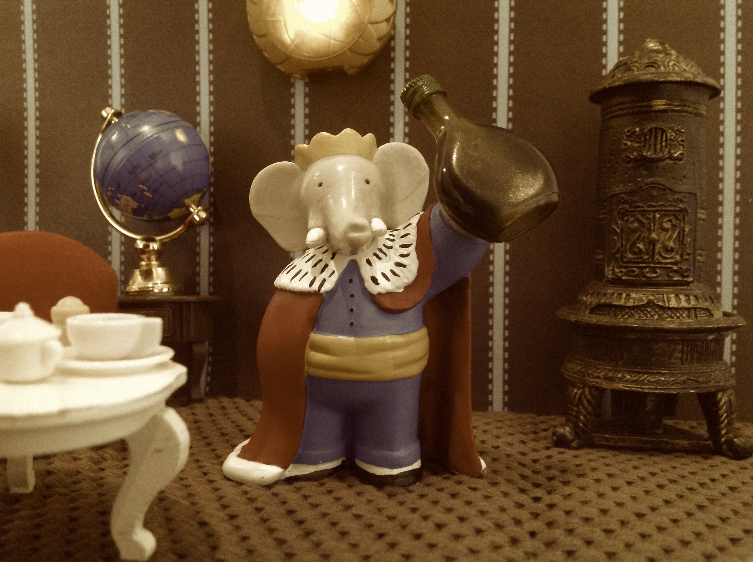 Babar hadde litt problemer med å fokusere. Det virket som om han stod og duppet litt av foran dem. Peggy tok fra ham flasken med hostesaft. Hun noterte kort at den muligens var i sterkeste laget for en elefant, og i alle fall en barnebok. Men franskmenn var nå engang franskmenn.