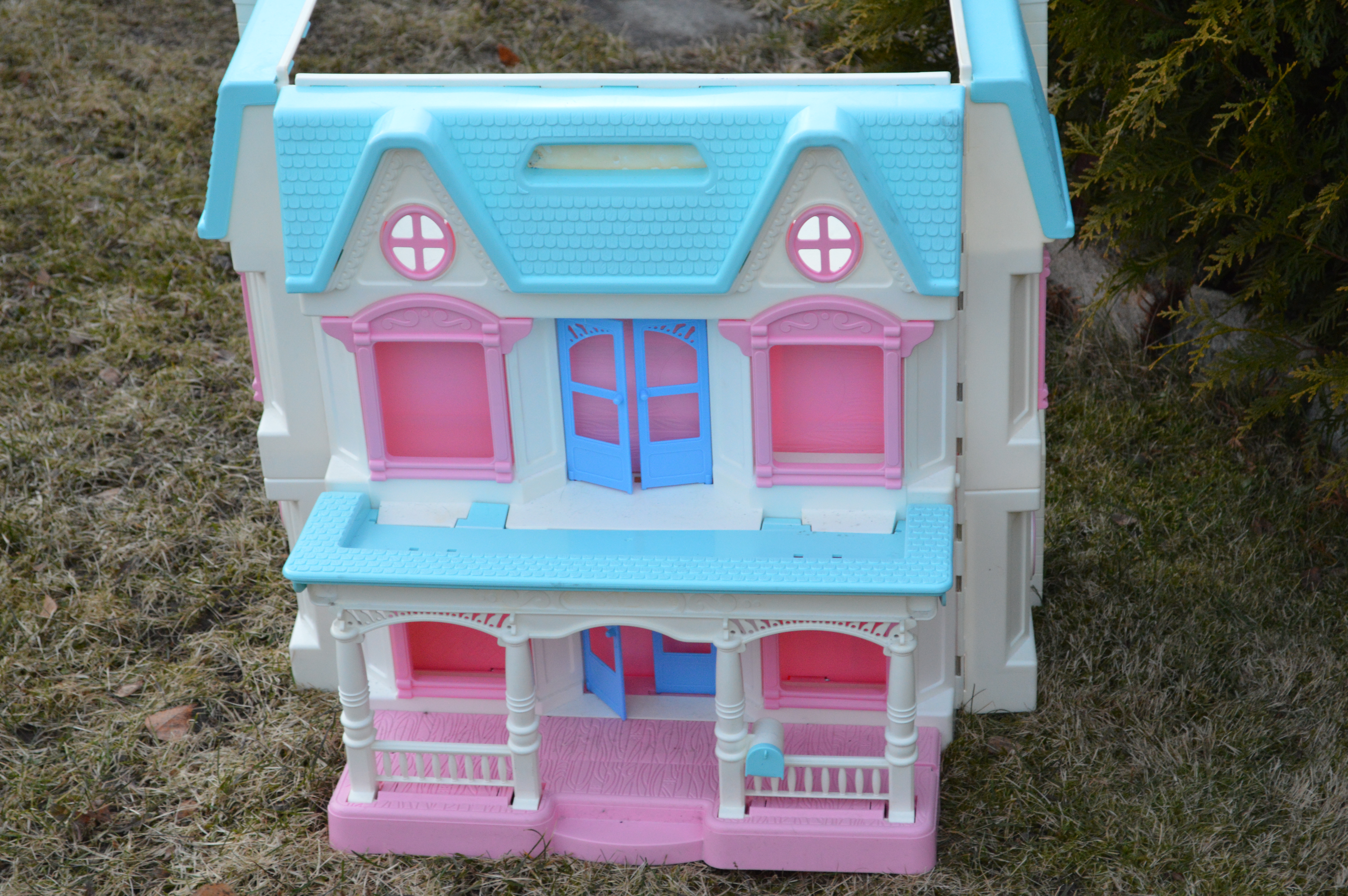 Her er et dukkehus jeg fikk gratis på finn.no. Det skal pusses opp til å se ut som det staselige Påskegodset. Det er ganske stort og veldig plastikk og veldig, veldig rosa. Spennende prosjekt som jeg skulle likt å ha bedre tid til. Jeg fikk det av en småbarnsmor, så alle kan ikke være like ille.